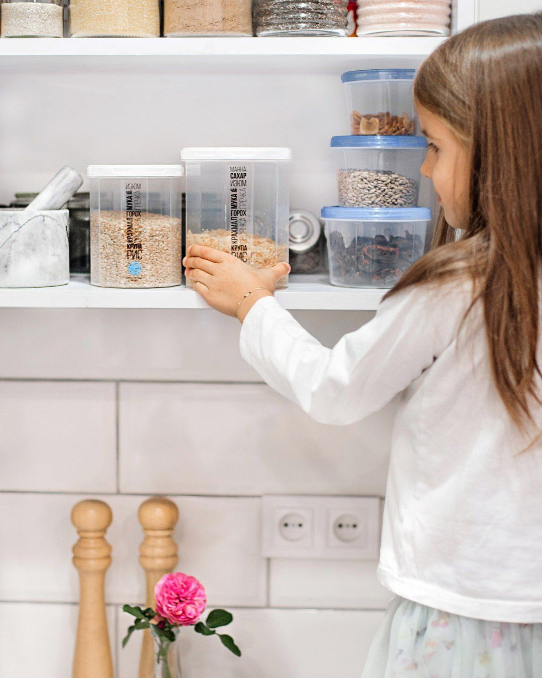 It's an excellent container to storage cereals, pasta, flour, sugar, salt, and other granulated products. The modern colors of the containers' lids will harmonize perfectly in any kitchen. The convenient shape of the container makes it compact, but capacious at the same time. Plastic does not absorb odors, the lid closes tightly.