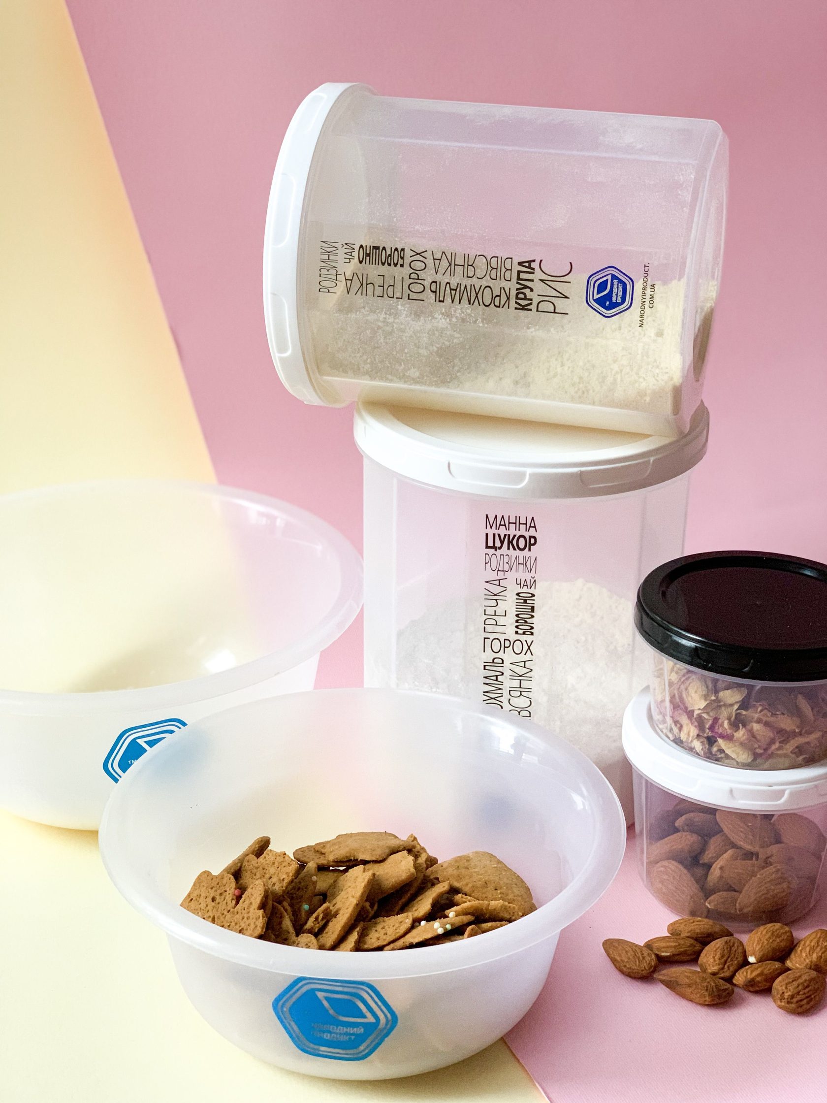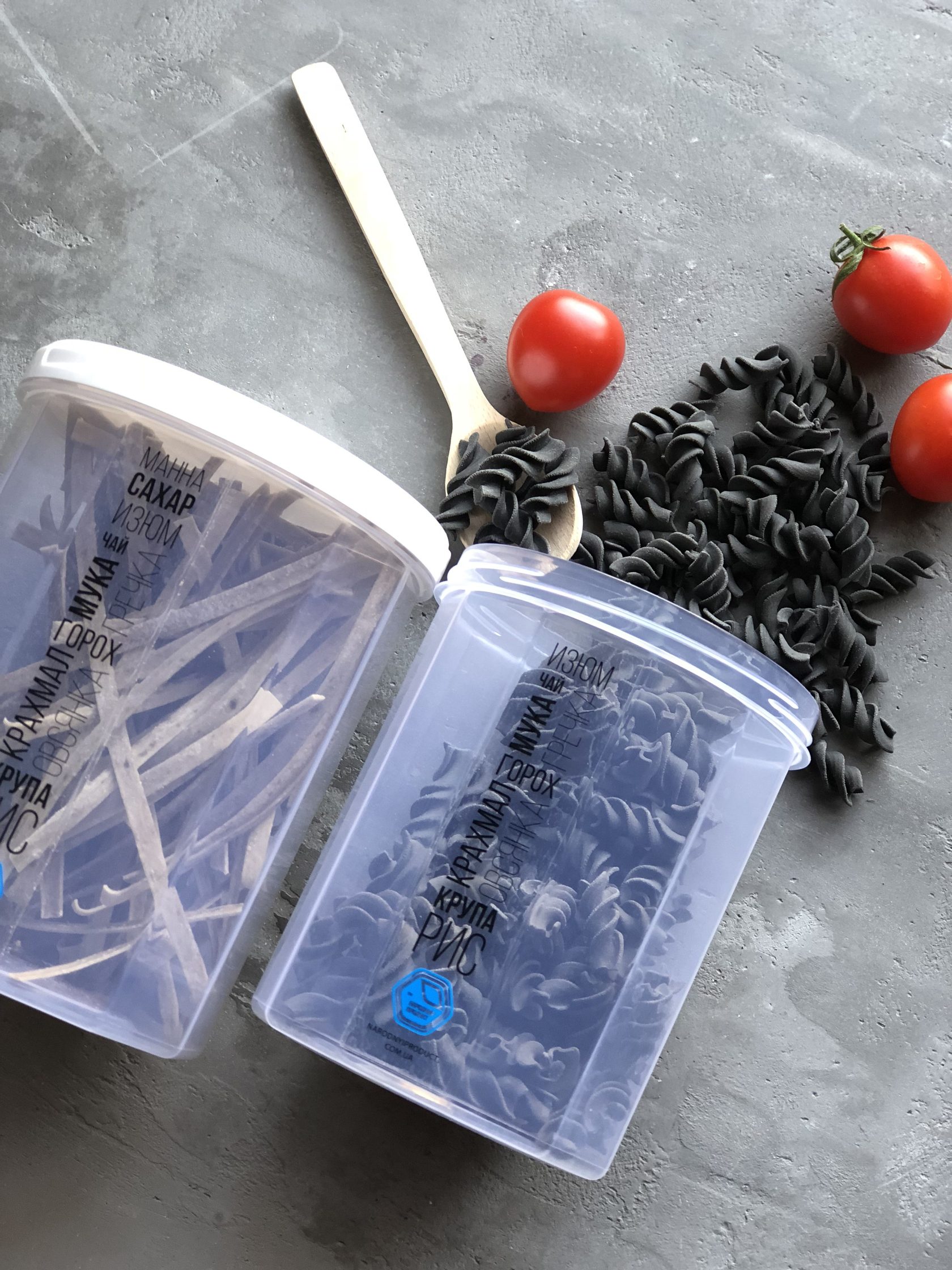 Convenient containers for granulated products help keep your kitchen shelves tidy. It's a great solution for storing flour, cereals, sugar, salt, and other granulated products. The container is hermetic, that protects the contents from dust and moisture. All containers are stylish and practical, easy to wash and do not occupy much space in the kitchen.