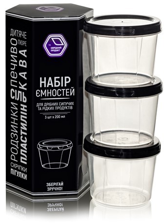 Set of containers for small bulk and liquid products 3x200ml. black(art. 88b)