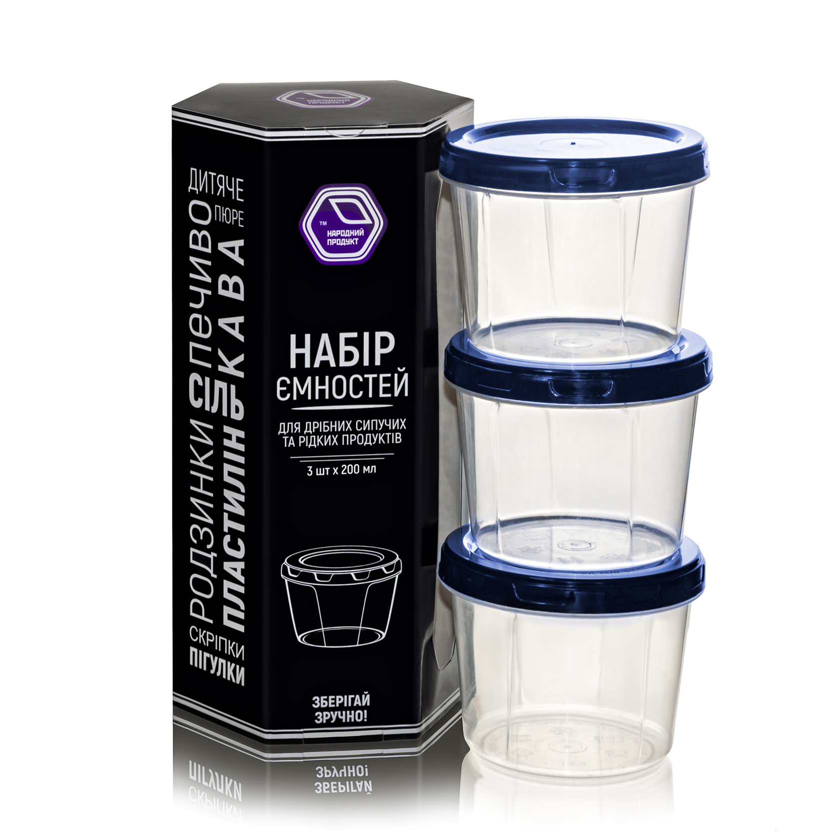 Set of containers for small bulk and liquid products 3x200ml. indigo (art. 88i)
