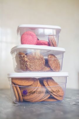 Capacious containers are great for storing not only food products, but also household items, clothes, shoes, toys etc. The convenient shape of the containers allows them to be stacked one on top of the other, and the lids prevent moisture and dust from getting inside. The containers are made of high quality bisphenol A (BPA) free plastic. The containers are completely safe for human health.