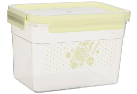 A capacious, airtight container helps keep your food fresh for as long as possible. It is possible to store and transport absolutely any products in it, including liquid ones. A special rubberized cover will not allow them to spill. Containers can be used to freeze, heat dishes in a microwave oven (only without a lid). The container does not absorb odors and is easy to wash.