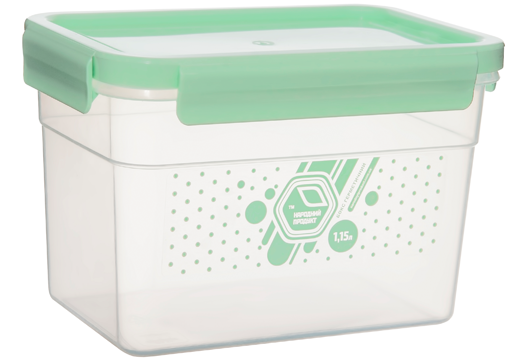 A capacious, airtight container helps keep your food fresh for as long as possible. It is possible to store and transport absolutely any products in it, including liquid ones. A special rubberized cover will not allow them to spill. Containers can be used to freeze, heat dishes in a microwave oven (only without a lid). The container does not absorb odors and is easy to wash.