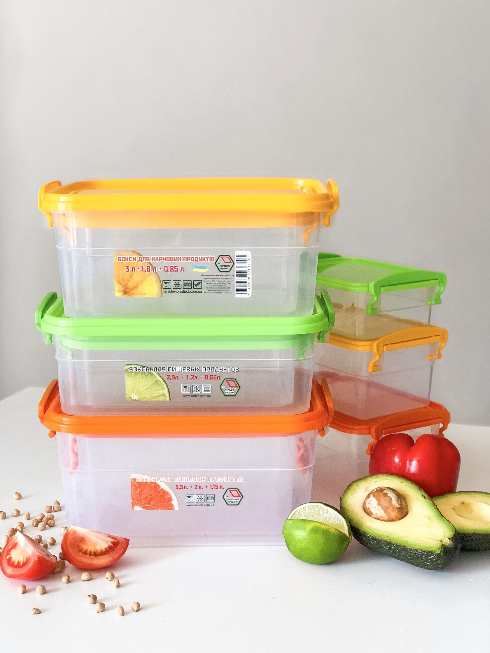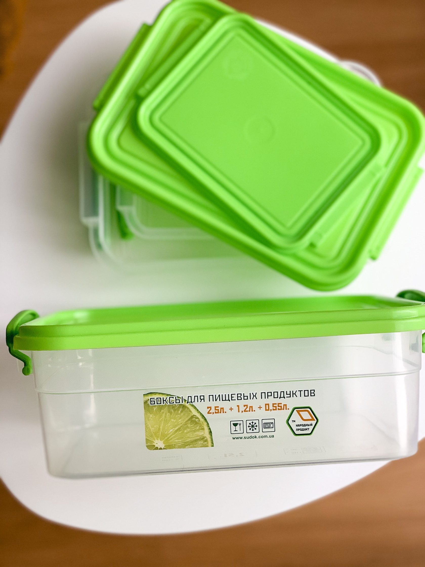 The set is compact and does not occupy much space in the kitchen. Food containers can be frozen, used for storing semi-finished products or to storage of vegetables and fruits. You can use them to heat dishes in the microwave, after removing the lid.