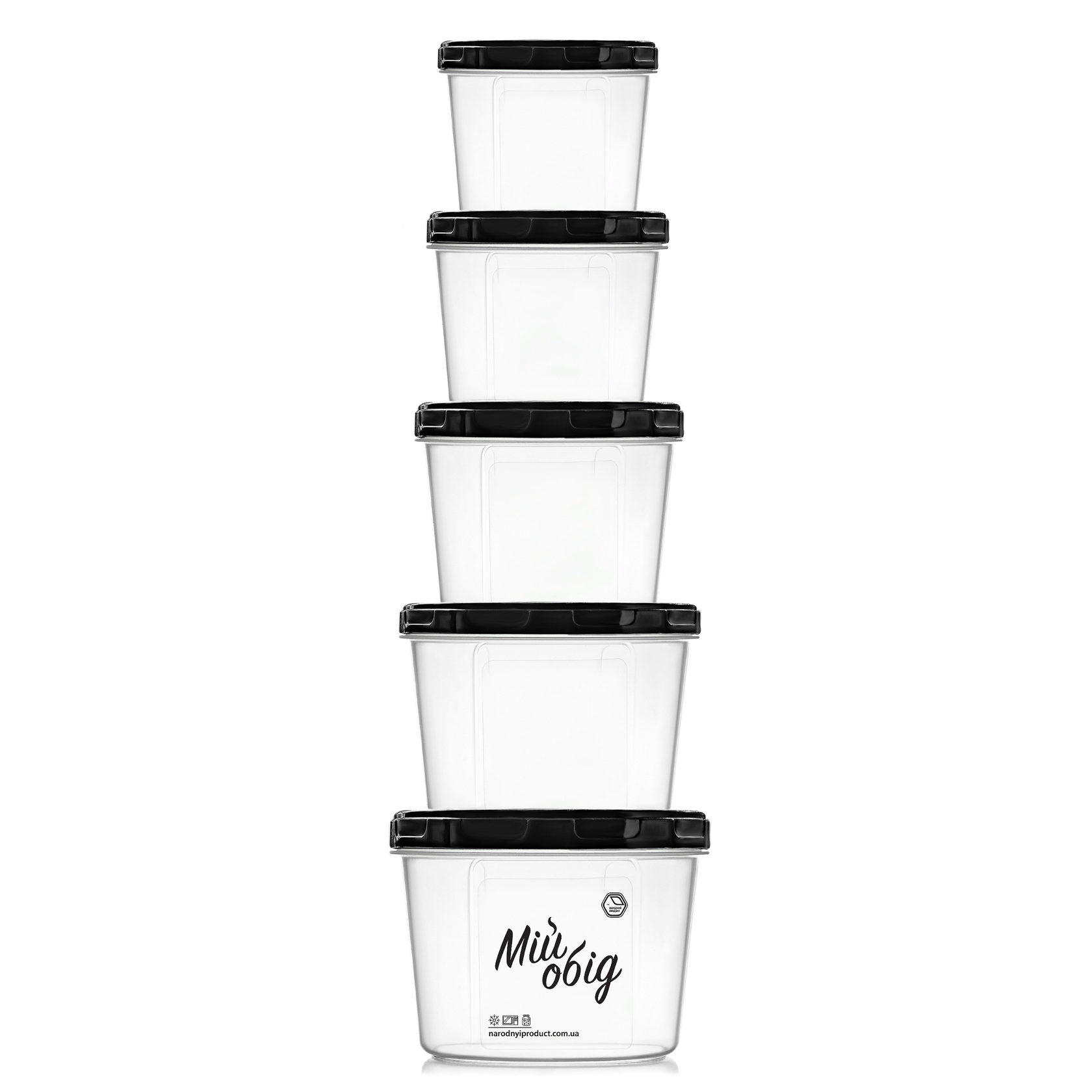 Set of round capacity B&W 0,2 + 0,3 + 0,5 + 0,7 + 1 l with black lid (art. 97)