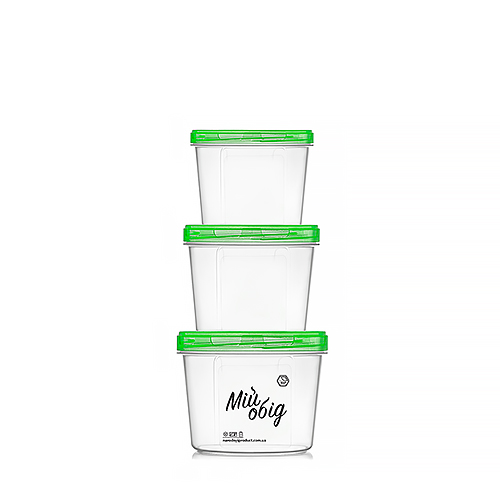Set of round capacity 0,3 + 0,5 + 0,7 l with a green lid (art. 70g)