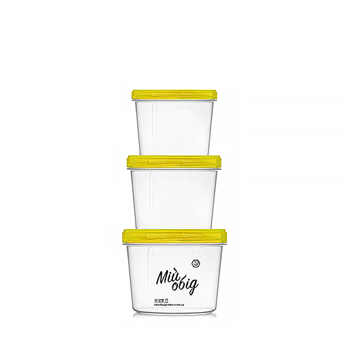 Set of round capacity 0,3 + 0,5 + 0,7 l with a yellow lid (art. 70y)