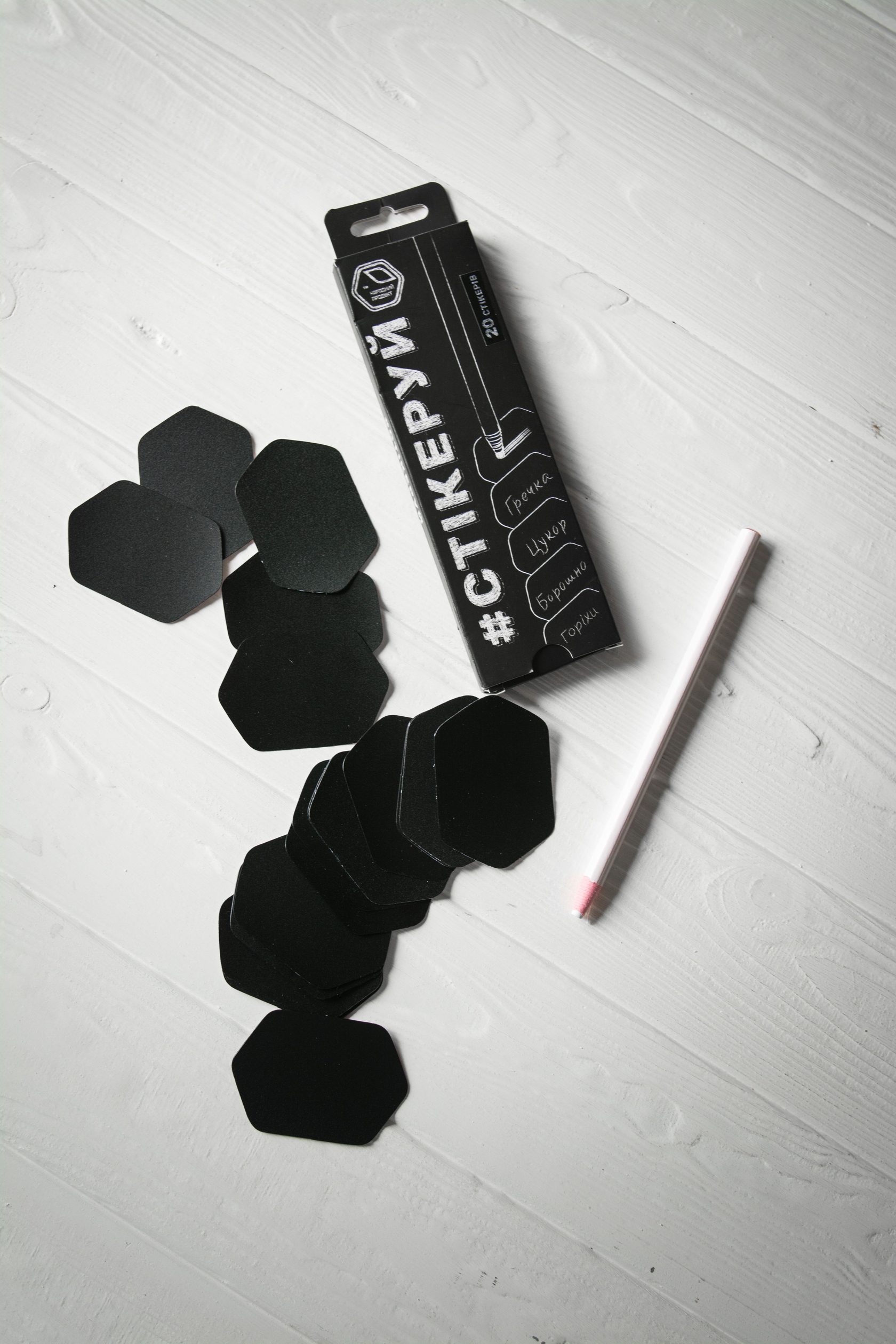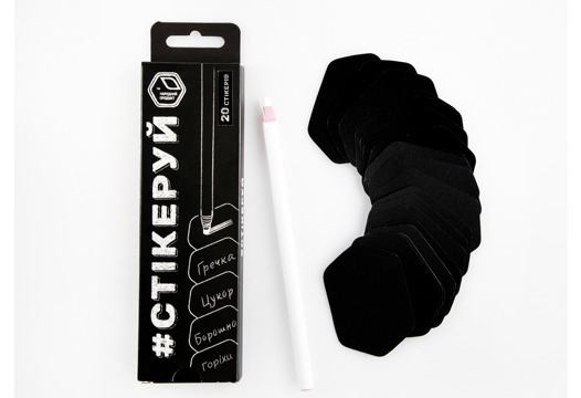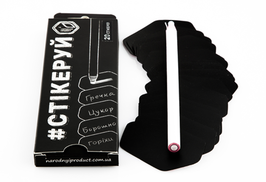 Using the Sticker marking kit, you can perfectly place all things in order in the kitchen or any other room. The chalk pencil does not need to be sharpened, just pull on a special thread, which is located near the rod, and remove the protective layer. The adhesive base of the sticker holds well on any smooth surface. You can sticker food storage containers, glue them on the refrigerator, lockers, various boxes, etc.